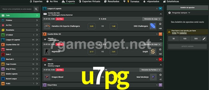 O u7pg oferece uma grande seleção de opções de apostas em e-sports com probabilidades competitivas